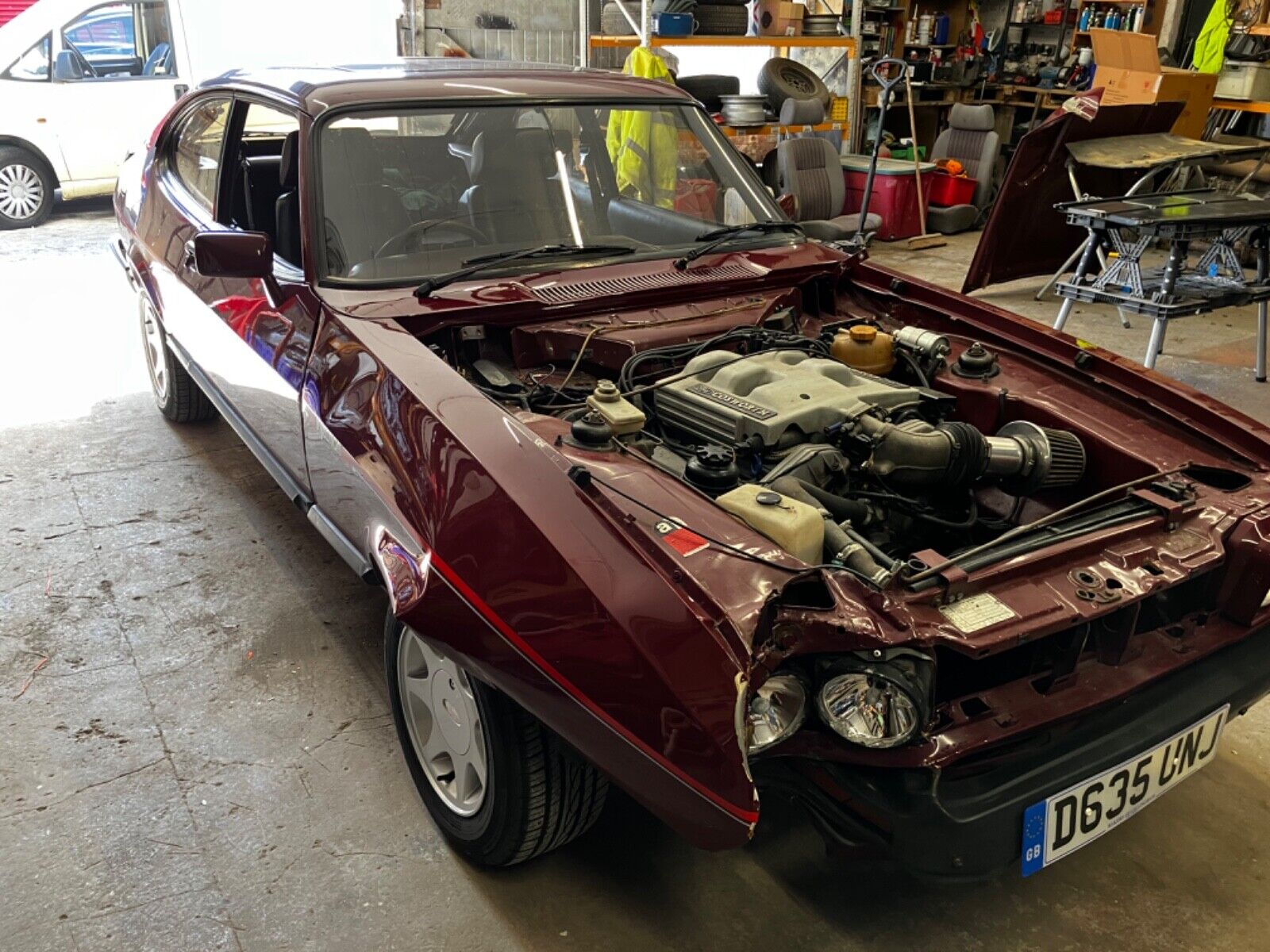 “I have a business in Hartlepool dealing in, exclusively, Capris and Capri spares.I’ve been fortunate enough to buy this Cosworth powered Capri and I’m genuinely unsure what to do with it. Pre-accident, it’s been a real jewel. HPI clear. No insurance company involvement. Still runs and drives. Originally a Laser, it’s been properly converted. 2.9 24 valve Cosworth with Emerald ECU. Starts on the button with superb oil pressure. Five speed, fully rebuilt LSD, New single leaf springs, front coilovers, all polybushed, new exhaust, very recent tyres. New brakes. Superb interior. Lovely, complete, Superb 280 Brooklands interior, new moonstone headlining. Power steering. All panels are excellent as are the floor and chassis. New tank and pump. Uncracked dash. The damage has not caught the chassis leg so the panels needing replacement will be: o/s outer and inner wing, one end of o/s front valance, bonnet, bumper, headlamp bowl. Few bits of trim and lights. I have bonnets, wings (used) bumpers, bumper ends, lights. All the gaps are still good though the wing has obviously gone back and catches the door. The doors are excellent. Straightforward repair. ”